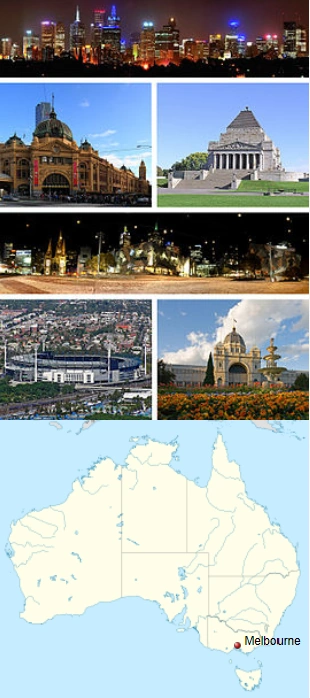 Locations in Melbourne as well as where it is located in Australia.